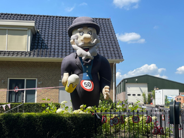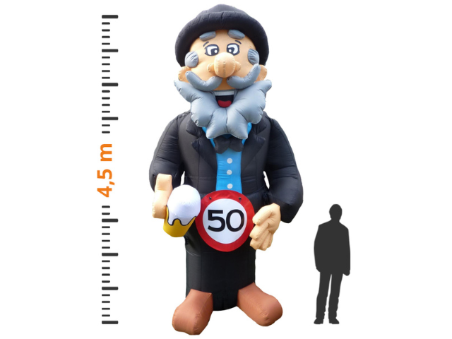 Wil je een man op een ludieke manier verrassen voor zijn verjaardag of jubileum? Huur dan onze opblaasbare Abraham met een grote bierpul in zijn hand, maar liefst 4,5 meter hoog! Ideaal voor verjaardagen, pensioenfeesten of andere feestelijke mijlpalen. Deze vrolijke Abraham trekt gegarandeerd de aandacht en zorgt voor veel bekijks.