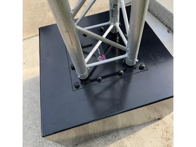 Dit zwarte ballastblok van 250 kg is ontworpen voor het veilig verzwaren en stabiliseren van tijdelijke truss constructies. Het betonblok is afgewerkt met een zwart gepoedercoate stalen omkasting en voorzien van conische koppelingen voor aansluiting op Prolyte H30V truss.